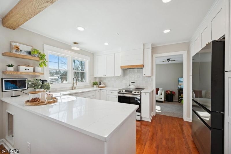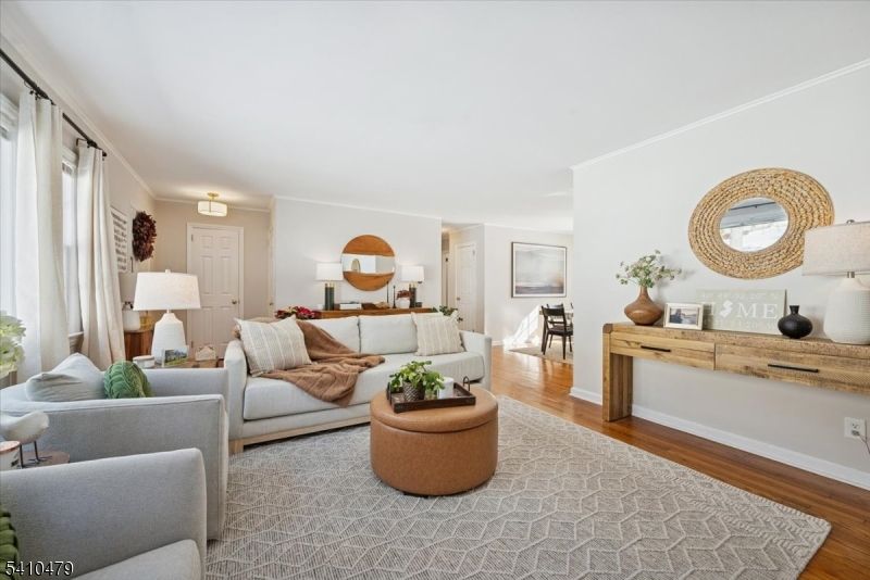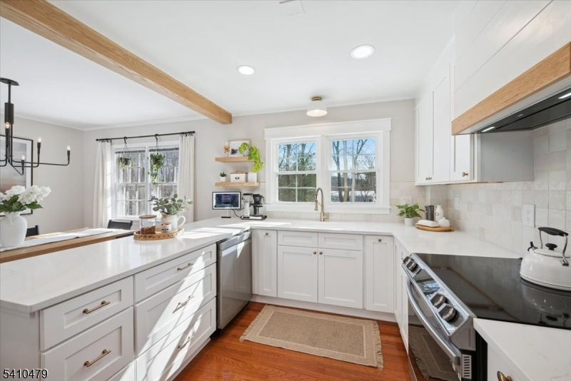 Recently Renovated & Superbly Located! Move right into this expanded and beautifully updated Cape Cod with 4 bed, 2 baths, and an attached one-car garage. Set on a half-acre lot on a tree-lined street in the highly desirable Butterworth Farms neighborhood of Morris Township, this home is close to schools, parks, dining, shopping, and NJ Direct train to NYC. Distinctive features include hardwood floors, crown molding, a fireplace, skylights, a partially finished basement, and a deck overlooking the sweeping back yard. The home's main entrance opens to a bright, airy living room with a wood-burning fireplace, a formal dining area, and a newly updated kitchen outfitted with quartz counters, SS appliances, and fresh white cabinetry. Off the kitchen is a sunny family room with sliding glass doors to the deck and its own outside entrance from the front making it ideal for a home office setup. The primary bedroom, full bathroom, and a second bedroom complete the main level. Two more bedrooms upstairs include skylights and dormer windows, along with a full hall bathroom. The partially finished walkout basement is perfect for entertaining with a large recreation room and an exercise room. This home offers a peacefully situated haven in a sought-after community just minutes from the vibrant heart of downtown Morristown. Truly turnkey and move-in ready, it provides the perfect balance of comfort, convenience, and lifestyle, an ideal place to settle in and feel right at home.