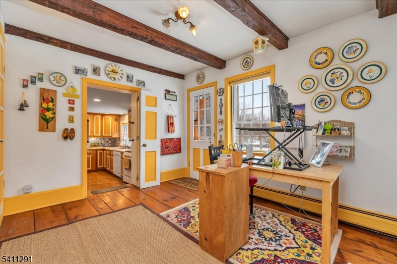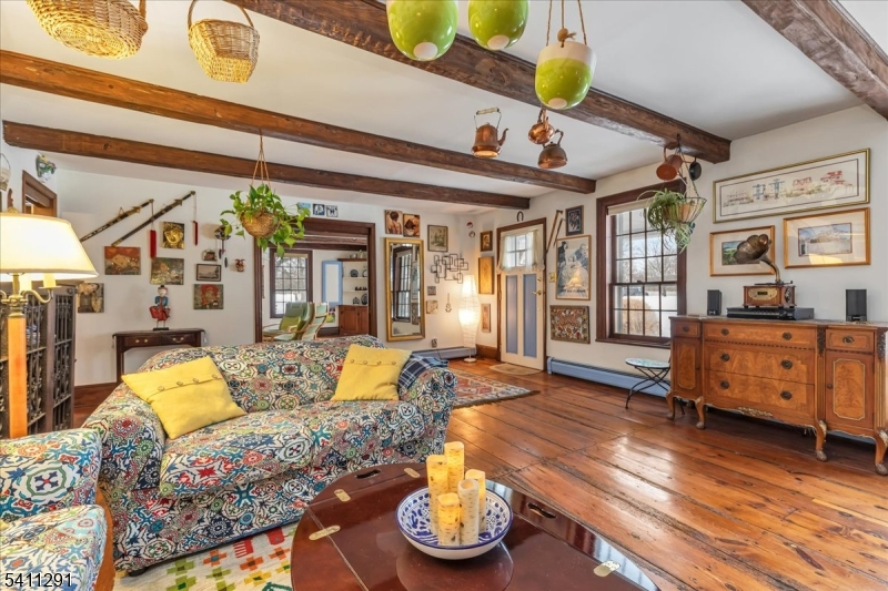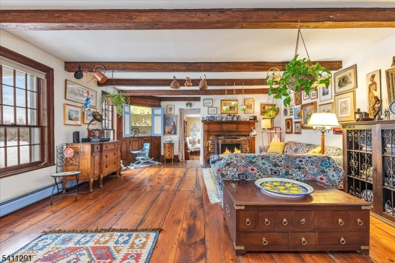 Historic farmhouse on a gorgeous lot in a tranquil location. 1st floor has formal LR & DR, parlor/family room, library with adjacent full bath, office, kitchen, 2 bedrooms, and another full bath with walk in tub. Primary bedroom has walk in closet. Home has 2 wood burning fireplaces being conveyed "as is", no known issues. 1/5th of the pond is part of the property. There is a nature conservation easement on the property. Septic system was installed in 2015. 3 zone heat. Antique pine floors.