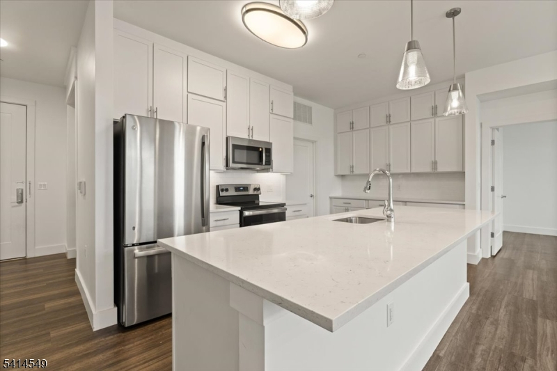 Ideally located in the heart of downtown Berkeley Heights, just 2 blocks from the train station and within walking distance of an array of shopping and restaurants, this 2-bedroom plus den , offers beautiful finishes, high ceilings, an open floor plan, and many modern conveniences. The kitchen has an 8-foot breakfast bar with seating, 48-inch cabinets, quartz counters, and an attractive subway tile backsplash. The washer and dryer are conveniently located in the unit. This unit is over 1500 sq feet and has a large private terrace. The Terrace is a 4-story elevator building, constructed in 2020, offering many amenities, including a fitness center, a community room, a secure lobby area, a gorgeous outdoor patio area with grills, a fire pit area, and various seating options. Indoor and exterior parking are available. The Terrace of Berkeley Heights offers desirable separation from the urban lifestyle, boasting a balance of connectivity, activity, leisure, and peace while providing easy access to midtown Manhattan. Available May 1st