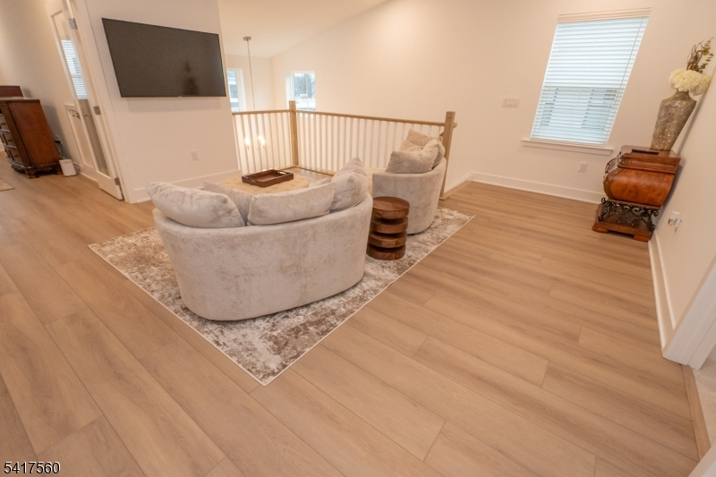 Ground floor primary bedroom suite with walk-in closet, a rare find! Step into the Oaks at Randolph. This Marchand Elite end-unit offers an elevated living experience, beginning with an impressive two-story foyer that opens directly into the heart of the home. The expansive great room connects effortlessly to the backyard and sits beside a casual dining area and a beautifully appointed kitchen featuring abundant cabinetry, generous counter space, a walk-in pantry, and a central island with seating. Tucked privately off the great room, the tranquil primary suite includes a spacious walk-in closet and a luxurious bath with dual vanities and an oversized shower with a built-in seat. The second floor hosts two additional bedrooms each with its own walk-in closet a shared hall bath, and a large loft that offers flexible living space. A versatile upstairs flex room, convenient laundry area, and a main-level powder room near the everyday entry add to the home's functionality. The finished basement provides an exceptional extension of the living space, ideal for a home theater, entertaining, or play, and includes its own powder room. Throughout the home, upgrades abound: quartz countertops, premium appliances including refrigerator, washer, and dryer, luxury vinyl plank flooring, enhanced lighting, upgraded tile and plumbing fixtures, and high-quality blinds. The closets have been custom outfitted, and the basement has been finished by the owner with meticulous attention to detail.