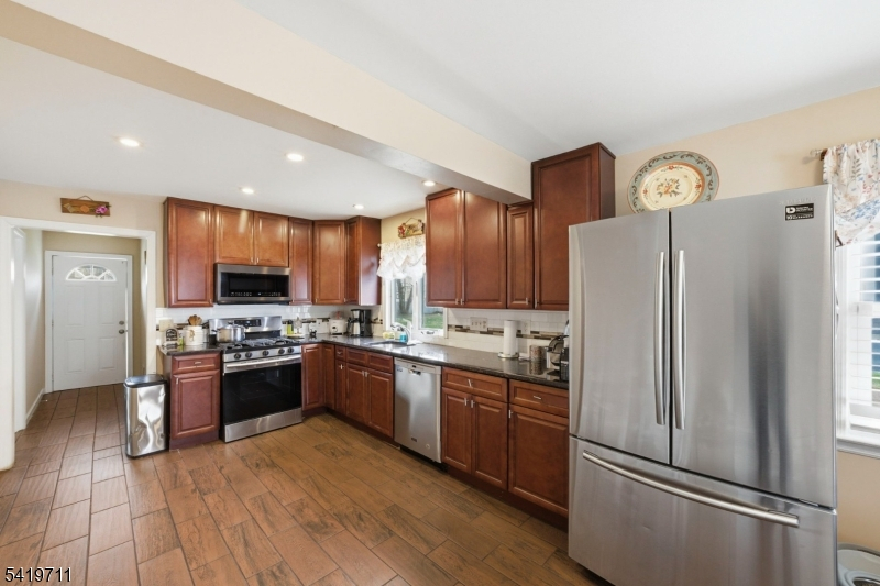 This property presents a unique opportunity for homeowners in Bound Brook! Featuring a living room with a cozy fireplace, a bright eat-in kitchen, granite countertops and stainless-steel appliances. A standout feature is the flexible first-floor layout. The fourth bedroom is currently being used as a dining room but can easily be converted back into a private bedroom ideal for guests or anyone seeking a convenient first-floor option. A full bathroom is located directly across the hall. Upstairs, you'll find generously sized bedrooms, including a primary that features a spacious walk-in closet. A full bathroom with a double vanity serves the upper level. The home also includes a partially finished basement, offering extra storage or potential for additional use. Situated on a large lot, the property also features a welcoming front porch. Beyond its inviting living space, this property offers additional potential now and in the future. Located in the R-4 Residential District, township zoning officer verbally confirmed a vertically attached house can be built as an addition to the existing dwelling without board approval as it is currently consistent with the existing code allowing duplexes. Only architectural plans consistent with the current code/setbacks would need to be submitted. With its versatile layout, desirable features, and future potential, this home presents a unique opportunity for homeowners and investors alike.