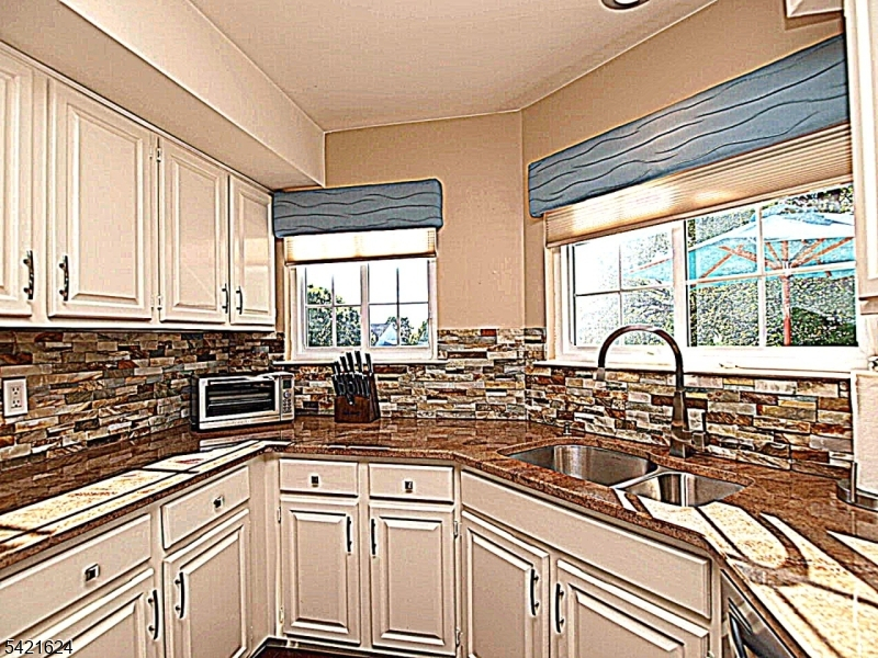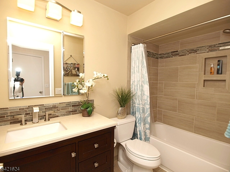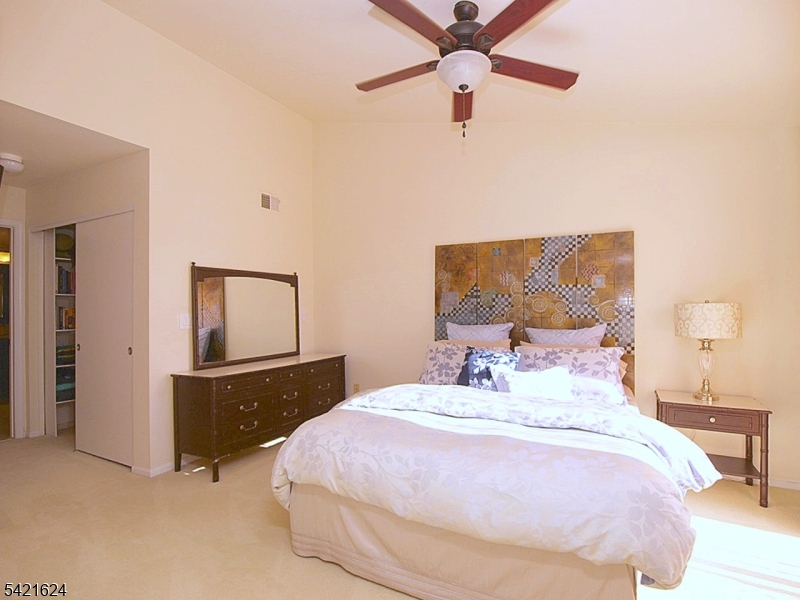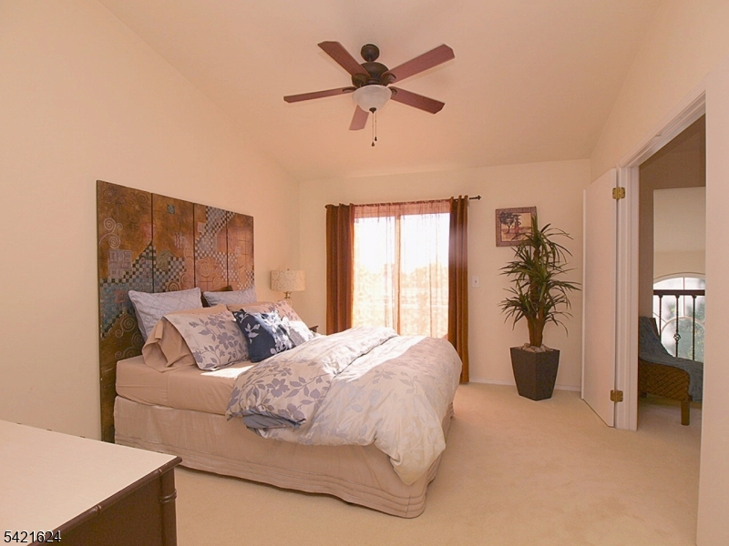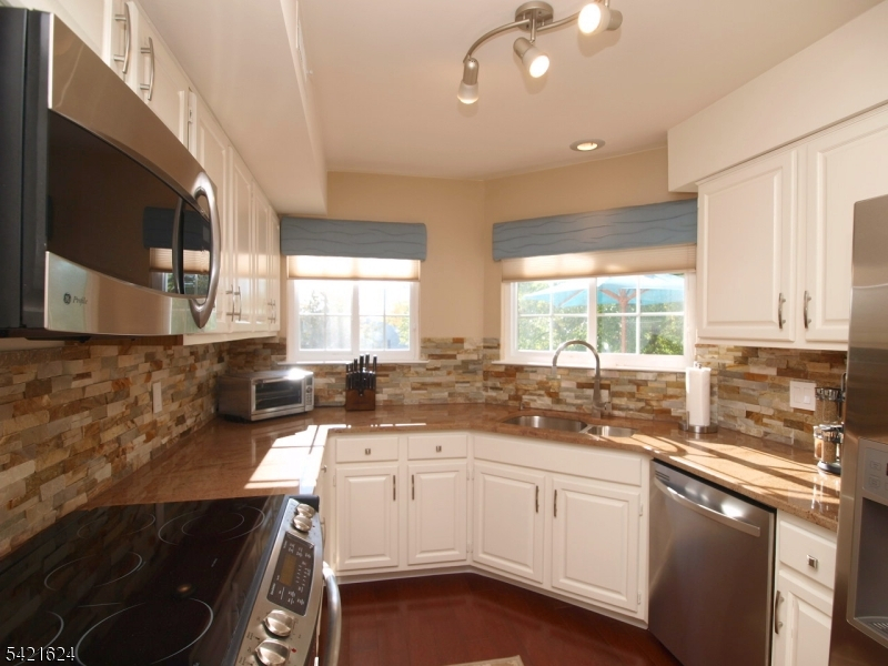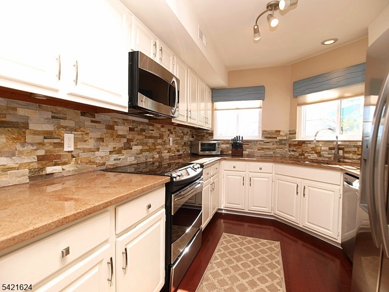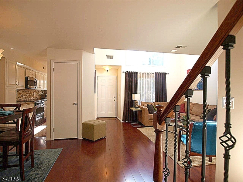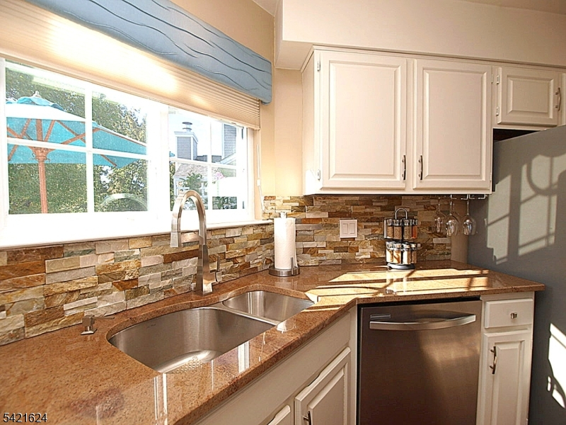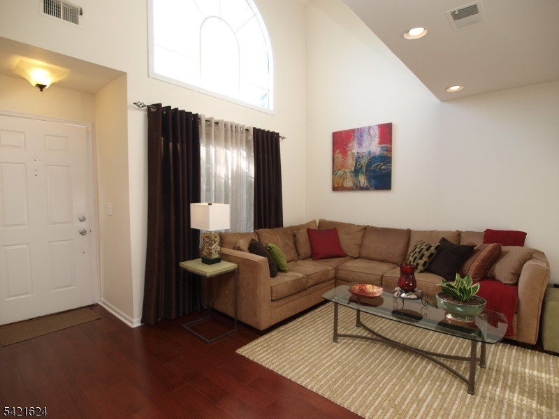 Move right into this beautifully updated Crestmont Model "D" townhome (Largest) with garage and direct entry in one of the community's most desirable locations! This bright 2BR, 2BA home offers an open floor plan with southern exposure and abundant natural light. Updated granite kitchen with stainless steel appliances, stacked-stone backsplash, and maple floors with cherry finish on the main level. Dramatic living room with vaulted ceilings, cozy wood-burning fireplace with custom slate surround, and striking sunburst window. Spacious loft overlooking the living room perfect for a home office or den. Primary bedroom features vaulted ceiling, private balcony, and walk-in closet with custom built-ins. Gorgeous renovated baths with porcelain tile and granite vanities. Enjoy a spacious Trex deck ideal for entertaining. Conveniently located next to the community pool and just a short stroll to shops, NYC bus, and easy access to I-78, Route 287, and nearby NYC train service. New HVAC 2018, new gas water heater 2023, newer windows.