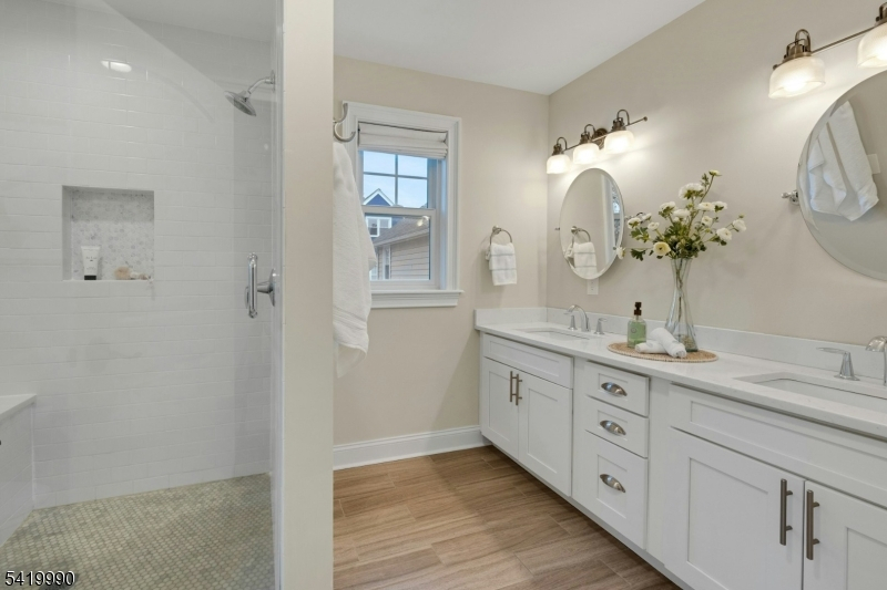 Bright, spacious, and thoughtfully built, 20 N. Summit Avenue offers a modern floor plan in a highly convenient Chatham location. Located approximately 0.4 miles from the Chatham NJ Transit train station and about 0.6 miles from Milton Avenue School, this home combines accessibility with a welcoming neighborhood setting. The main level is designed for today's lifestyle, with an open flow connecting the kitchen, dining, and living areas, ideal for both everyday living and entertaining. The kitchen and dining area provide direct access to a large deck, creating an easy indoor-outdoor connection. Nearby is a convenient mudroom, powder room and access to the attached garage. The living room is anchored by a fireplace, adding warmth and character, while large windows throughout fill the home with natural light. Upstairs, the primary suite features a vaulted ceiling, three generous closets, and a well-appointed bath with dual sinks and a glass-enclosed shower. Three additional bedrooms share a hall bath with dual sinks, and a second-floor laundry room adds everyday convenience. The walk-out lower level is a standout, offering abundant natural light, flexible living space, and a private fifth bedroom with a full bath ideal for guests, a home office, or extended living. The level backyard provides plenty of space for outdoor enjoyment, play, or entertaining. With its combination of location, layout, and livability, 20 N. Summit Avenue offers an exceptional opportunity in Chatham.