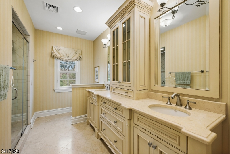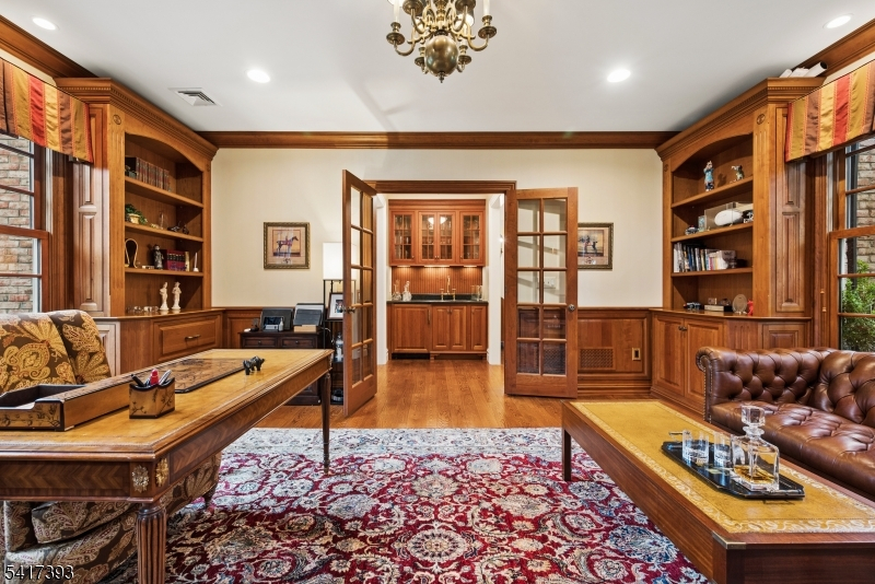 Welcome to a one-of-a-kind custom residence where no expense was spared and every detail was thoughtfully designed. Perfectly positioned on a quiet cul-de-sac in the heart of Watchung, this meticulously maintained home has been professionally landscaped and showcases a stately four-sided brick facade. With steel beam construction, you'll have confidence in owning this home for years. The thoughtfully designed floor plan features ensuite baths in every bedroom, including a desirable first-floor ensuite with French doors opening to an oversized deck. The chef's kitchen is truly spectacular, highlighted by a 10-foot center island, custom stone moldings, & high-end commercial-grade appliances. A first-floor office has rich mahogany built-ins & a gas fireplace, creating an inspiring workspace. The luxurious primary suite offers a private retreat with a sitting room, a gas fireplace with remote start, two custom walk-in closets, and a spa-like bath. The walkout lower level lives like its own residence, complete with a custom wood bar, wine cellar, full bath, gym, game room & a wall of windows overlooking the private backyard. Enjoy seamless indoor-outdoor living with a covered patio, expansive deck, and flat, fenced yard ready for your future pool and backyard oasis. You won't want to miss this superiorly constructed home.
