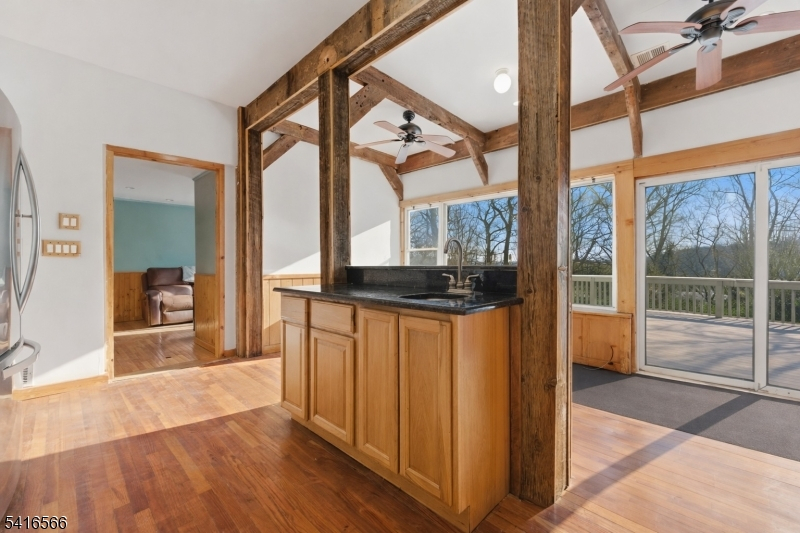 Spacious 3-bedroom, 2 full bathroom single-family home offering nearly 2,000 sq ft of living space in a desirable lake-area setting in Hopatcong. The main level features a large living and dining room combination, a generous kitchen with access to an oversized deck with lake views, a versatile den or home office, laundry area, and a full bathroom.The second level includes three bedrooms, highlighted by a large primary suite with en-suite bath, walk-in closet, and private deck. Additional features include hardwood floors, a one-car garage, and an unfinished basement providing ample storage. Home requires a new septic system and additional repairs. Being sold strictly as is. Best suited for a renovation loan, 203k financing, or cash buyer. Motivated seller!