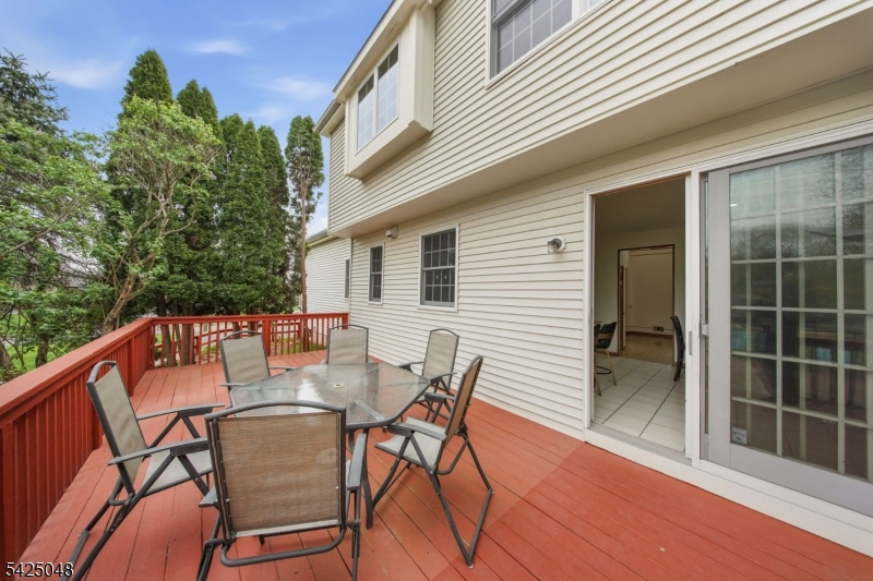 Fabulous bright and spacious Colonial single family in a quiet neighborhood and excellent school district in a 1.15 acres land. Four bedrooms plus a study room which could be the 5th bedroom on 1st floor, 2.5 bath, 2 car garage, full basement. Center hall, two story entrance foyer. Large kitchen with breakfast area, granite counter tops, stainless steel appliances, vent out exhaust fan. Family room with gas fireplace and French door access to the private big deck. Hardwood floor throughout. Master suite with huge walk-in closets with additional storage space which could be used as a quite study room. Master bathroom with double sinks, bathtub and stall shower. Finished basement has plenty of open space and serves as a recreation room. Beautiful front wrap around porch. Move in and enjoy the large front and backyard this summer!