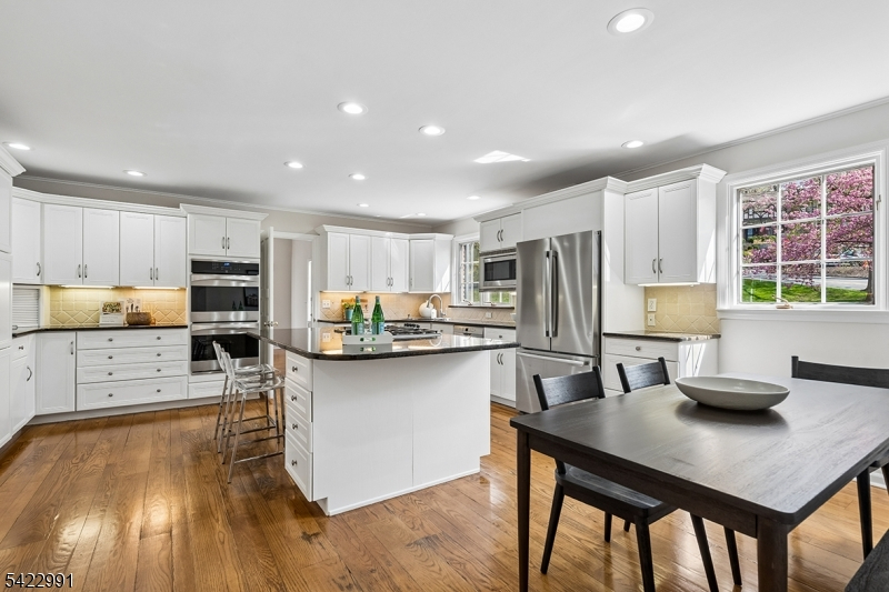 Exceptional 6BR, 4.1BA custom Colonial set on a lush 0.5-acre property with strong curb appeal and a spacious, versatile layout ideal for multi-generational living. Features include a dramatic two-story foyer, formal living and dining rooms with elegant moldings, and a large family room with new carpeting. The sun-filled eat-in kitchen offers white custom cabinetry, black quartz countertops, stainless steel appliances, center island with cooktop, and breakfast area. First-floor primary suite with dressing room and spa-like bath, plus an additional bedroom and full bath. Second level offers two skylit bedrooms with walk-in closets and shared bath. Walk-out lower level includes a large recreation room, two additional bedrooms, full bath, bonus/storage spaces, and direct patio access. Convenient first-floor laundry, attached 2-car garage, and multiple outdoor living areas. Located in the desirable Memorial Field neighborhood with access to Summit's top-rated schools, downtown, and NYC transportation.