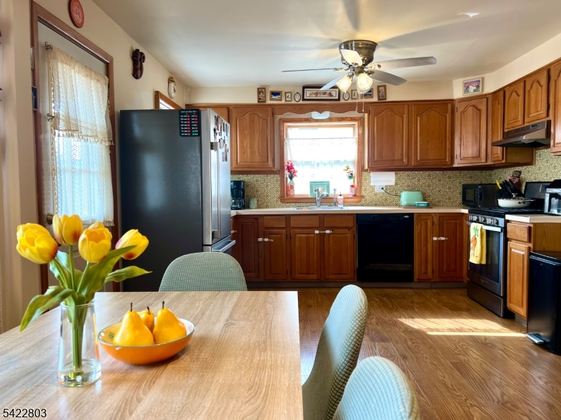 This spacious, well maintained 3 bedroom/2 bath home offers an enclosed front porch, large living room and eat-in kitchen w/ updated appliances, ample cabinetry (plus pantry) with direct access to a substantial deck overlooking fenced in yard and detached garage (built in 1999) w/ extra-long driveway. Recent updates include new composite wood flooring, LG front loading washer and dryer 2025, 5 new ceiling fans, 2 new window A/C units, all new outlets and lighting switches with dimmers, & new sump pump 2025. Situated on quiet residential street near schools, restaurants, shopping and public transportation.