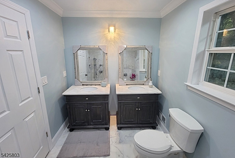 Welcome to this stunningly renovated Colonial in Great Meadows nestled at the end of a cul-de-sac showcasing breathtaking views of the mountains. Every detail of this home has been thoughtfully upgraded to combine timeless elegance with modern convenience. From the moment you arrive, you'll notice the inviting curb appeal featuring a new paver walkway, front steps with vinyl hand railing & a stylish front door accented by updated lighting. Fresh siding, new windows with custom trim & upgraded gutters & floodlights enhance the home's exterior. Beautifully renovated deck leading to the yard which is the perfect retreat at the end of a long work day. Step inside to discover an open-concept first floor adorned with new hardwood floors, crown molding & fresh paint throughout. The renovated kitchen is a chef's dream, boasting high-end appliances including a drawer microwave, double oven, & 8-burner stove, complemented by marble backsplash & quartz countertops. Elegant chandeliers & recessed lighting illuminate every room, creating a warm & inviting atmosphere. All bathrooms have been fully renovated with new tile, vanities, mirrors & fixtures. The primary ensuite is a true oasis, featuring marble tile, a double rain shower with Kohler fixtures, built-in seating, & dual vanities. The fully finished basement offers 494 additional square feet with tile flooring, a mudroom area, laundry & ample storage. Additional upgrades include a new dual-zone HVAC system for year-round comfort.