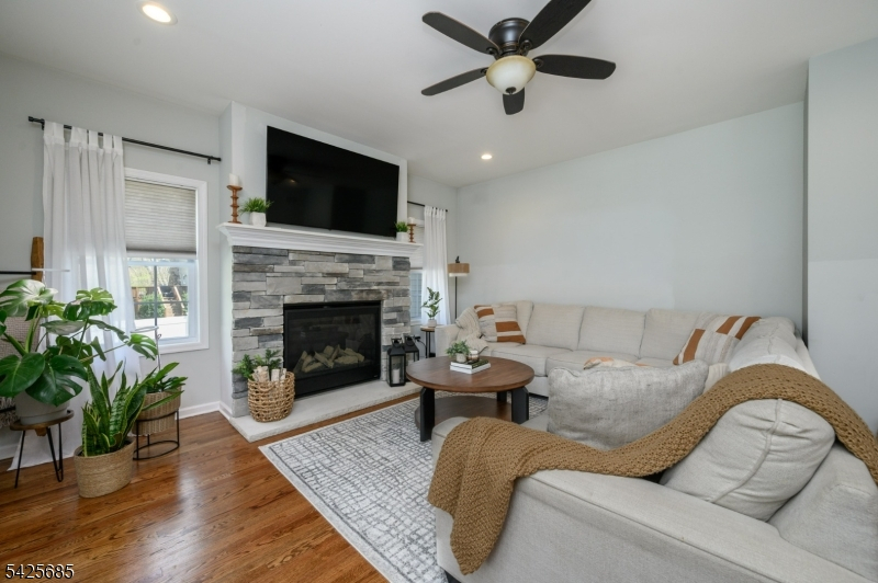 Beautiful 4 Bed, 2 Full Bath, 2 Half Bath Colonial with Master Suite, Finished Basement, 2 Car Garage & Resort-like Backyard is sure to impress! Meticulously maintained with curb appeal & plenty of upgrades all through, move-in-ready & waiting for you. Step in to find a spacious, sophisticated interior with generous rm sizes, rec lighting, HW floors & tons of natural light. Light & bright living rm flows seamlessly into the dining rm for easy entertaining. Upgraded eat-in-kitchen offers SS appliances, quartz counters, center island & dinette space. The EIK opens to the family rm, adorned with a gas fireplace, perfect for those crisp nights. 1/2 bath & laundry rm w/utility sink rounds out the main level. Upstairs, the main full bath, a versatile landing, and all 4 generous bedrooms w/ample closets, plush carpets & lighted ceiling fans, inc the Master Suite. MBR boasts its own ensuite bath w/jacuzzi tub, stall shower, & dual sink vanity. Finished basement w/ductless air/heater holds a dry bar, rec rm with faux fireplace, 1/2 bath, 2nd fridge, storage & utilities. Resort-like backyard ft. a large, newer saltwater heated IG pool (Fall 2023) w/temp fencing, a deck w/electric awning & fire pit, fenced-in for your privacy & comfort, with dual sprinkler system. 2 car garage with loft storage, freezer & ultra quiet door motor with double wide driveway offers ample parking. Smart-home equipped, with electric keylocks, smart thermostats & secure Ring system with cameras. A MUST SEE!