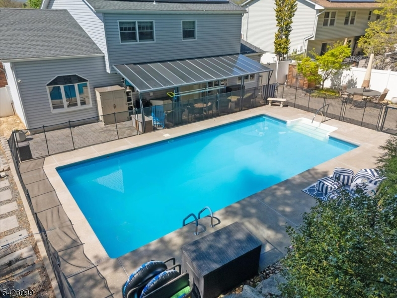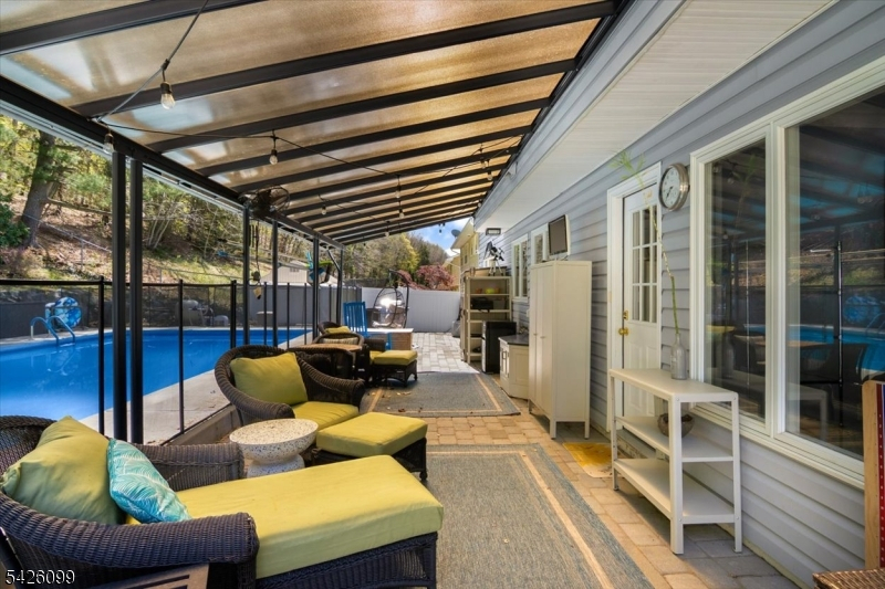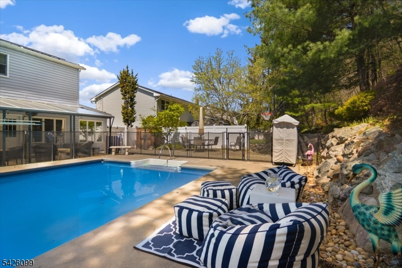 Your private backyard escape awaits in one of Wanaque's most sought-after neighborhoods. Nestled against the scenic backdrop of the Ramapo Mountains, this beautifully maintained and thoughtfully updated split-level home offers a rare combination of privacy, functionality, and exceptional outdoor living. The highlight of the property is a fully updated in-ground pool featuring a new liner, lines, and commercial-grade equipment, complemented by an expansive paver patio, landscape lighting, professionally landscaped grounds, and pre-plumbed for a pool heater creating the perfect setting for summer entertaining or peaceful relaxation. Inside, a welcoming foyer opens to a flexible multi-level layout enhanced by crown molding. The living and dining areas flow together seamlessly, accented by hardwood flooring throughout the main living areas. The eat-in kitchen offers newer appliances and ample space for customization. A spacious family room overlooks the backyard, providing additional living space. Major updates include a 2023 HVAC system, tankless water heater, solar panels, newer roof, air purification system, and radon mitigation. Additional features include a two-car garage with lofted storage and interior access. Conveniently located near local restaurants, schools, parks, and hiking trails, this move-in ready home offers comfort, space, and an outstanding backyard experience. Includes a 1-year home warranty.