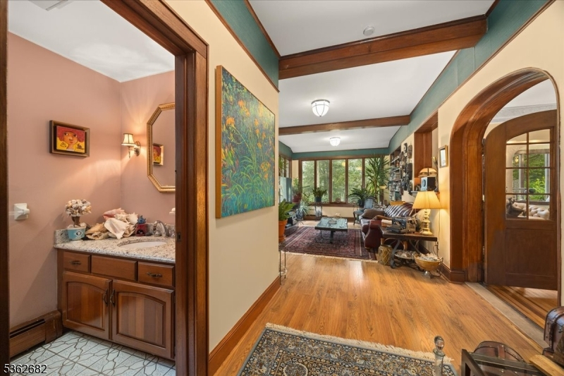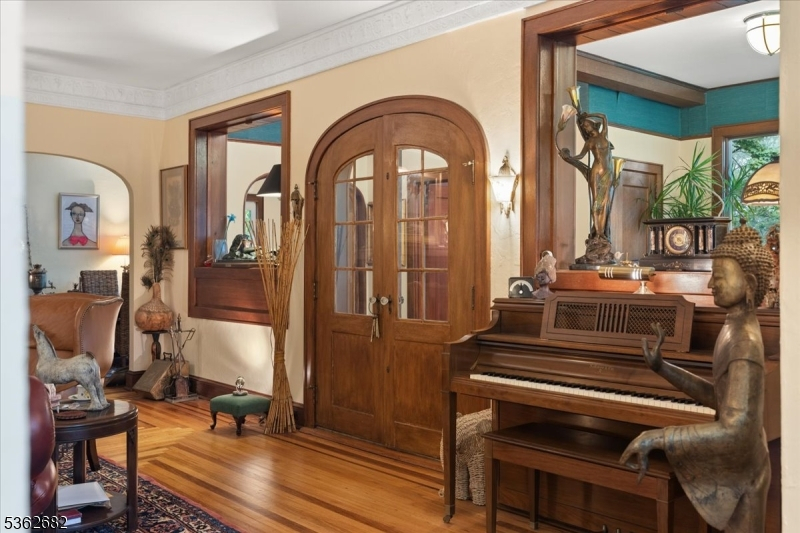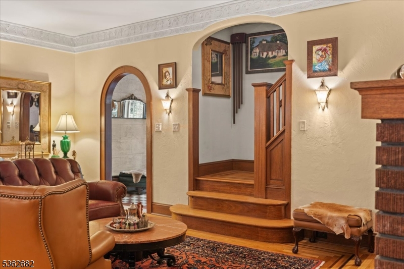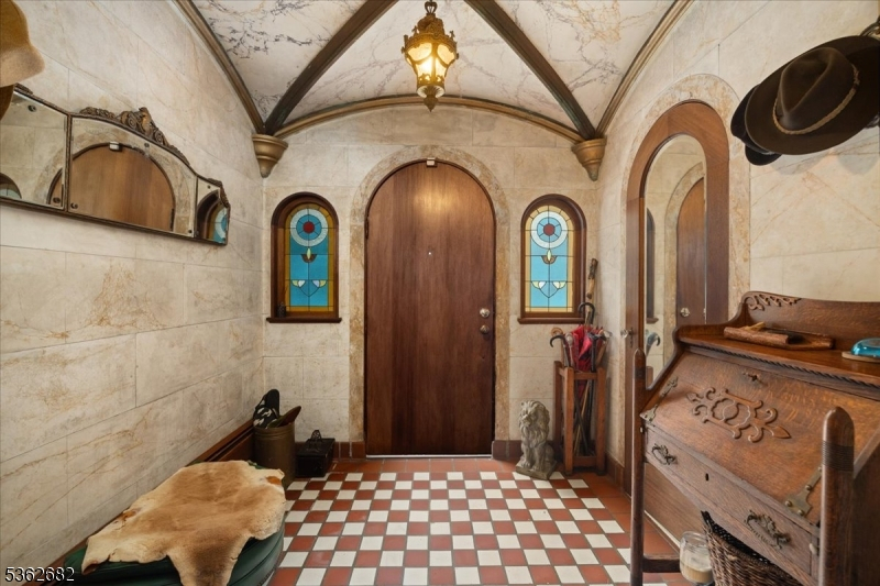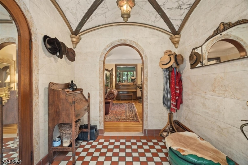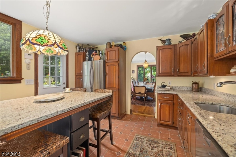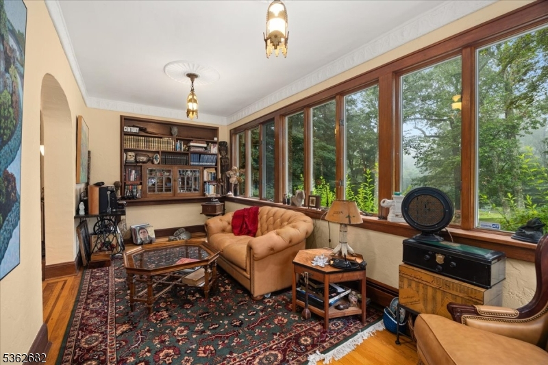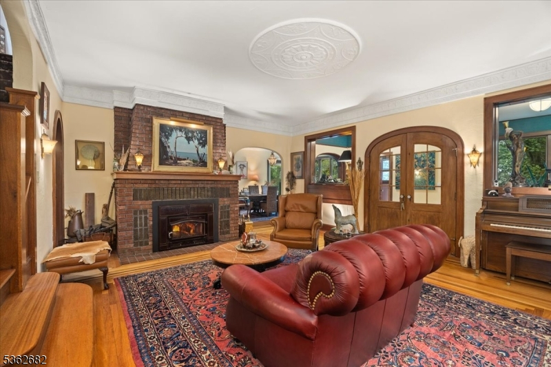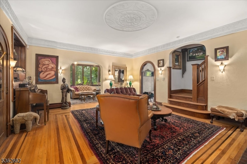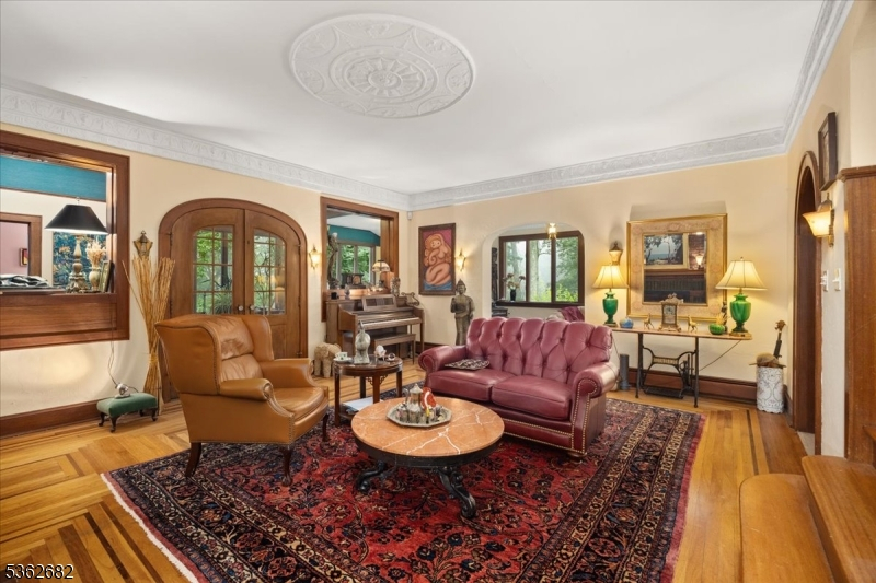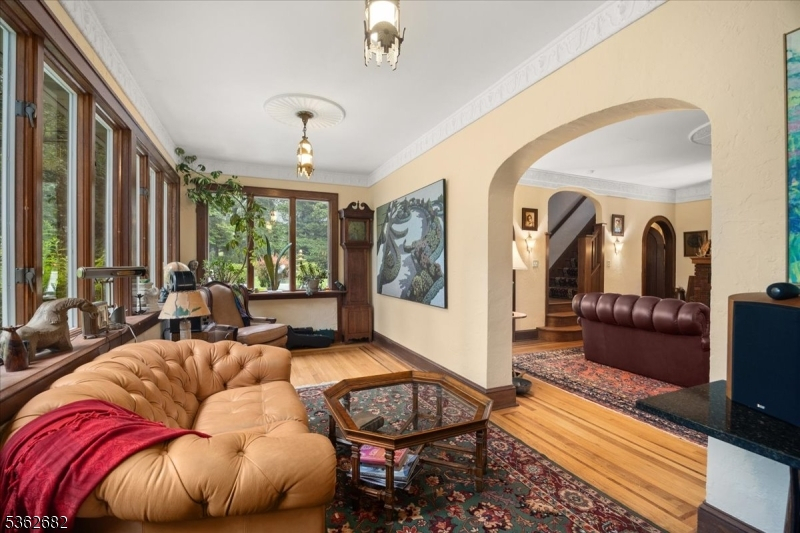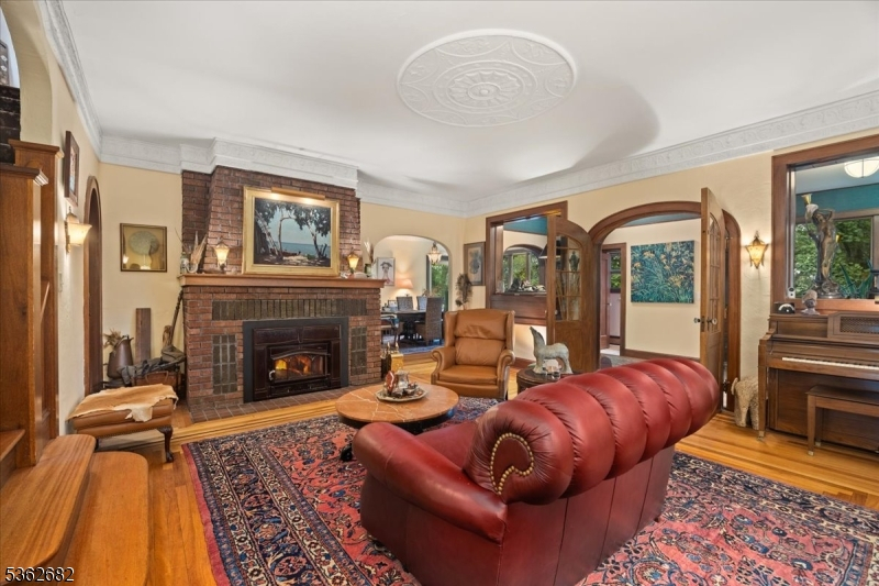 Welcome to this beautiful custom Mediterranean-style home in the desirable Backhus Estates, set on just over 5 acres of lush, private property. Originally built in 1937, this home is filled with charm and character you won't find anywhere else. Enter through the arched foyer into the spectacular living room with custom hand-carved mahogany moldings, ornamental trim, high ceilings, original lighting and a wood burning fireplace. An arched doorway leads to the conservatory, surrounded by custom bookcases, and a cozy library just off the living room. The large formal dining room with a french door that opens to the patio and picturesque landscapes of surrounding area. The eat-in kitchen offers plenty of space and direct access outdoors for easy indoor-outdoor living. Upstairs you'll find the primary bedroom with its own bath, along with three additional bedrooms, an office, and another full bath. The finished walk-out ground level adds additional living space, complete with a full bath and kitchen perfect for guests, a studio, or an in-law suite. Outside, enjoy oversized circular driveway, mature trees, tranquil surroundings that make this property feel like your own private retreat. New solar panels with battery back up and two EV charging stations. This unique estate blends timeless craftsmanship with endless potential. You are not only buying a home but buying a piece of history.