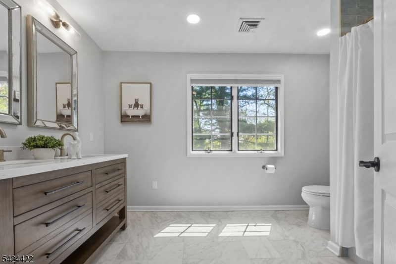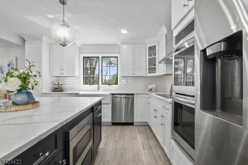 Welcome to this beautifully updated 5-bedroom Colonial nestled in the highly sought-after Sedgefield neighborhood of Morris Plains. Set on a generous lot, this home offers the perfect blend of space, functionality & modern upgrades,ideal for today's lifestyle.Step inside to a thoughtfully designed layout filled with abundant natural light.The custom kitchen features quartz countertops,quality cabinetry & stylish finishes, perfect for everyday living & entertaining, along with ample prep space & storage.The home includes four fully renovated bathrooms with modern design & attention to detail. The main living area flows seamlessly to an oversized deck & is complemented by a cozy wood-burning fireplace, creating a warm & inviting atmosphere.A first-floor bedroom currently serves as a home office & laundry area, offering added versatility for today's flexible living needs. Upstairs, the spacious primary suite includes a walk-in closet & en-suite bathroom, while closet systems throughout enhance organization. The fully finished basement is an entertainer's dream, ideal for a media room, recreation space, or gym;includes a bonus in-law suite with kitchenette, full bath & separate entrance. Additional highlights include a 1 car garage, expansive yard & ample off-street parking. Conveniently located near schools, shopping, dining & NJ Transit for an easy NYC commute,this home offers both comfort & convenience. A rare opportunity in one of Morris Plains' most desirable neighborhoods.