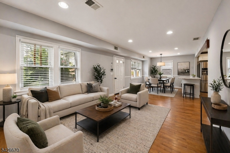 STEP into 19 Elmwood & feel instantly at ease, surrounded by sun-drenched interiors & charming details throughout. As you enter, you're greeted by gleaming hardwood floors that set a warm & inviting tone.Relax in the living room, the perfect place to unwind at the end of the day, with space for dining or comfortable living & easy entertaining. The heart of the home is the beautifully updated kitchen, featuring granite countertops, stainless steel appliances & abundant natural light ideal for both everyday living & hosting.Just off the kitchen, enjoy a versatile den with sliding glass doors that open directly to the rear yard, perfect for indoor-outdoor living, a casual lounge, or playroom. A first-floor bedroom & full bath complete this level, offering both comfort & flexibility.Upstairs you'll find a spacious primary bedroom with room for a king-size bed, along with an additional generously sized bedroom & an updated full bath.The finished basement adds even more valuable living space, complete with a full bath ideal for a recreation room, guest area, gym, or home office potential extra bedroom, along with laundry & ample storage. Adding to the home's appeal, a dedicated office space just off the garage provides a quiet & private work-from-home setup.Perfectly situated near parks, NYC trains, major highways, restaurants & shopping, this home combines comfort, convenience & charm in sought-after West Orange.Don't miss your chance to make it yours schedule your showing today!