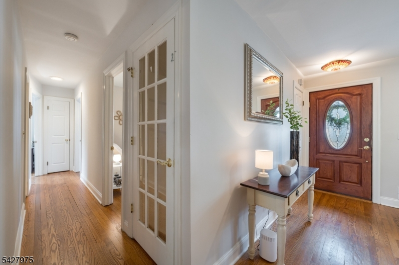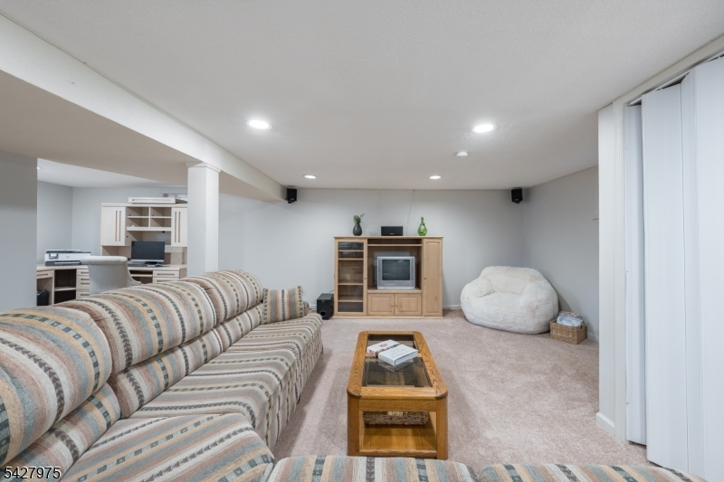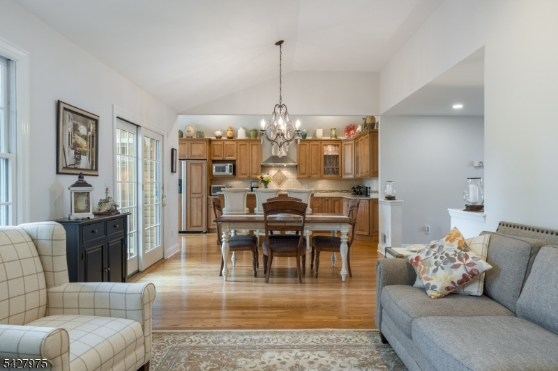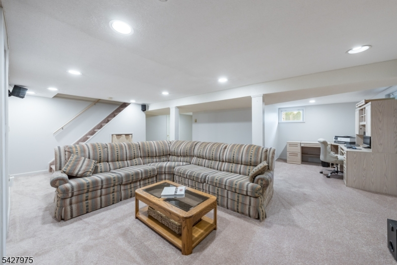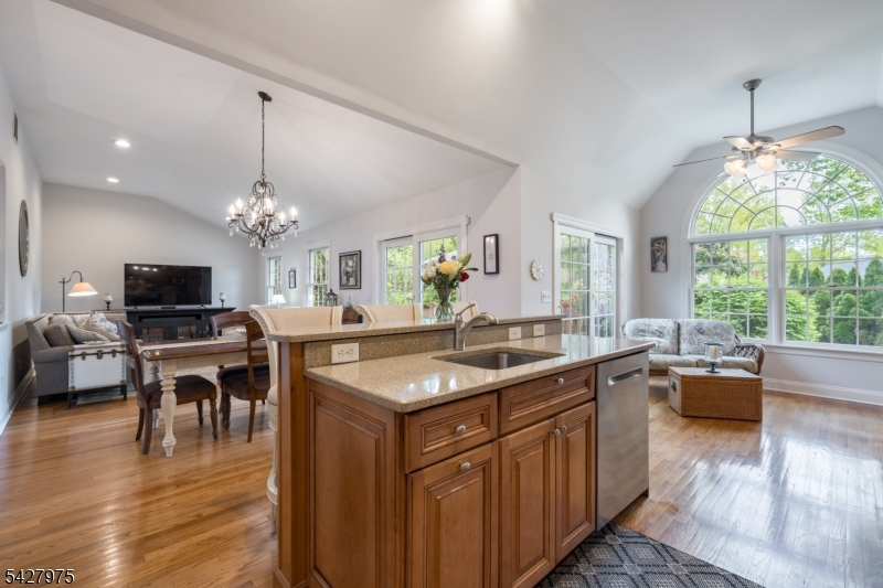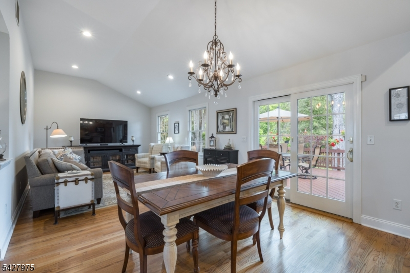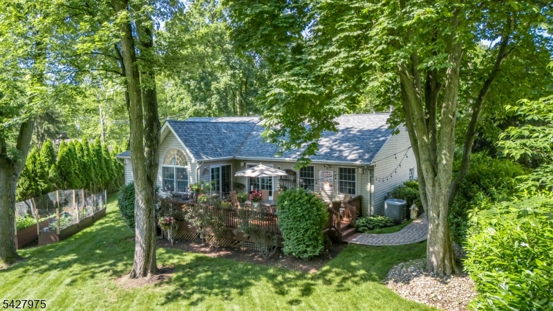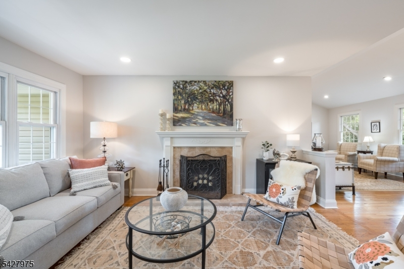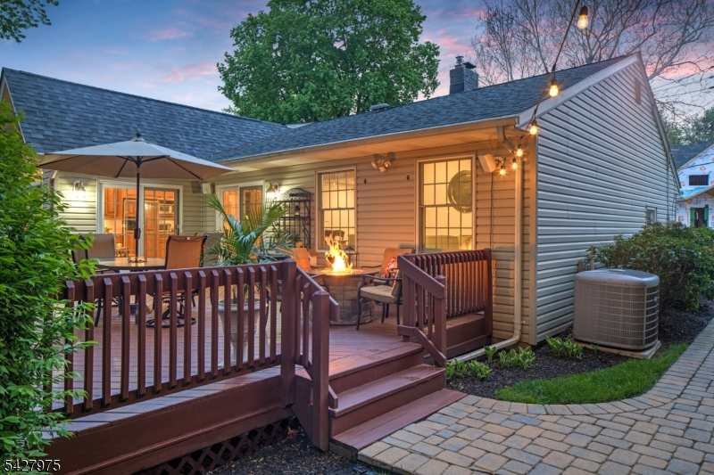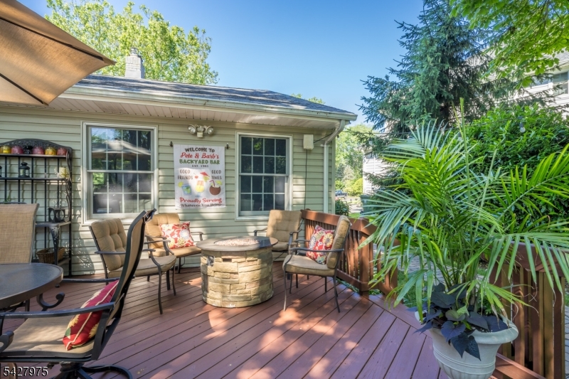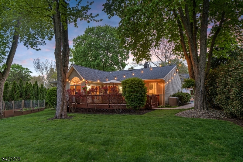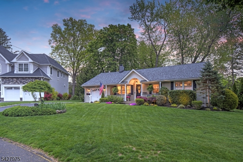 CAPTIVATING CURB APPEAL AT 1817 CHAPEL ROAD! This 3-Bedroom, 2-Bath gem is nestled in one of Scotch Plains' most sought-after neighborhoods, less than a mile from Tamaques Park and served by top-rated Scotch Plains-Fanwood School District. Delightful sitting porch sets the stage from the moment you arrive. Living Room impresses with attractive fireplace, crisp white mantel, and abundance of natural sunlight. Flow seamlessly into bright, open Family Room and Dining Room, graced by a soaring vaulted ceiling and glass slider to fabulous wood deck w/ outdoor speakers and luscious, green Backyard, the ideal setting for dinner parties, weekend brunches, summer bbqs, or cocktails with friends. Eat-In Kitchen is beautifully outfitted, displaying Silestone countertops, custom cabinetry, center island with seating for 3, large pantry, stainless steel appliances, and sunny dining or sitting area with its own slider to the deck, expanding effortless indoor-outdoor options. Single-level living is perfected here with 3 comfortable bedrooms, all boasting generous closets with double racks, and even a classic cedar closet. Two Full Bathrooms and pristine hardwood floors throughout, complete main level. Finished heated & carpeted L-Shaped Recreation Room, featuring surround music system offers an expansive retreat, ready for everything from a gym, family room or work suite; plus large Laundry Room, and gigantic unfinished storage room with potential space for whatever your vision inspires.