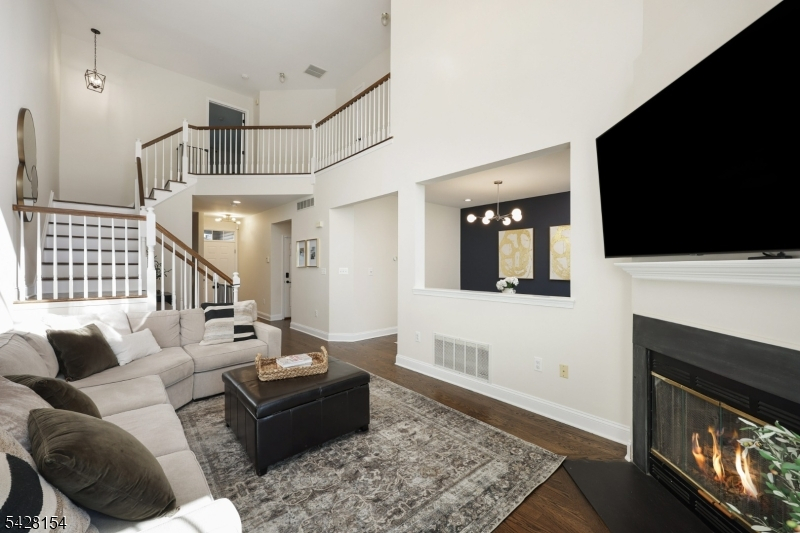 Step into light-filled elegance in this beautifully maintained Martinsville townhome, where soaring 2-story ceilings and rich hardwood floors create an immediate sense of space and style. Sunlight pours through expansive windows, highlighting a thoughtfully designed layout that feels both open and inviting from the moment you enter. The updated kitchen offers the perfect blend of function and style, seamlessly connecting to the main living areas for easy everyday living and entertaining. The dramatic living room, with its vaulted ceiling and cozy gas fireplace, provides a stunning focal point, while the patio just beyond invites outdoor relaxation and gatherings. The primary suite serves as a private retreat, featuring a large walk-in closet and a spa-like bath with a soaking tub and stall shower. A second bedroom with its own en suite bath adds comfort and flexibility. The finished basement expands the living space with a generously sized recreation room, perfect for a variety of uses. A 1-car garage adds convenience, completing this home that balances comfort, design, and lifestyle.
